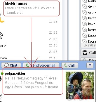 Modern korNah gyorsan leirom, sok dolgom van, de ez nagoyn tetszik, emgosztom veletek is...Most nem részletezendő okokból a házunk előtt állt kb egész életem fizetése 3 autó formájában a múlt héten amikor hazaértem. Ezt megosztottam a kedves nézőközönséggel GTalkon. Most láttam az egyik reakciót.... :)Lásd: kép |