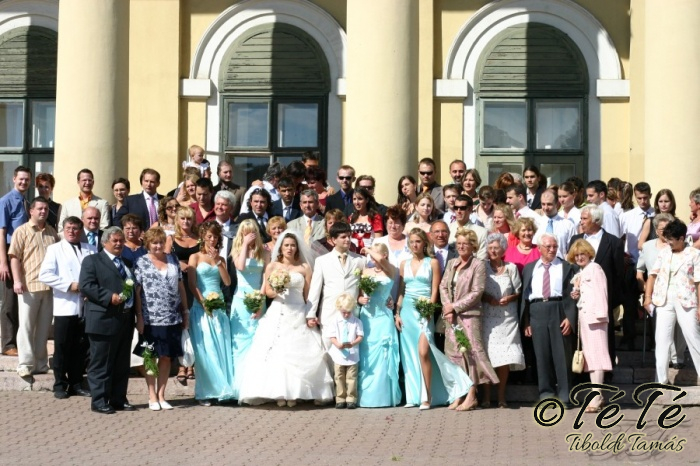 minket feldiszitve. Nah meg a násznép. Az érkező autókat kiterelték a