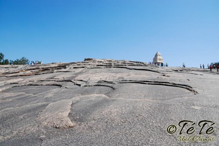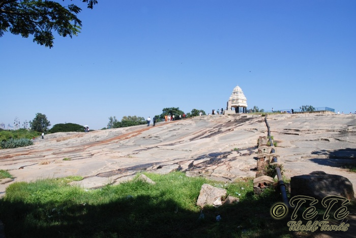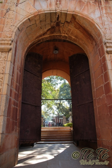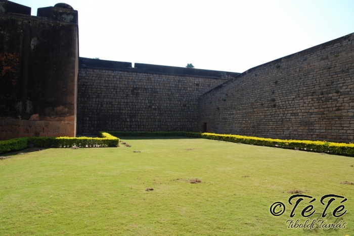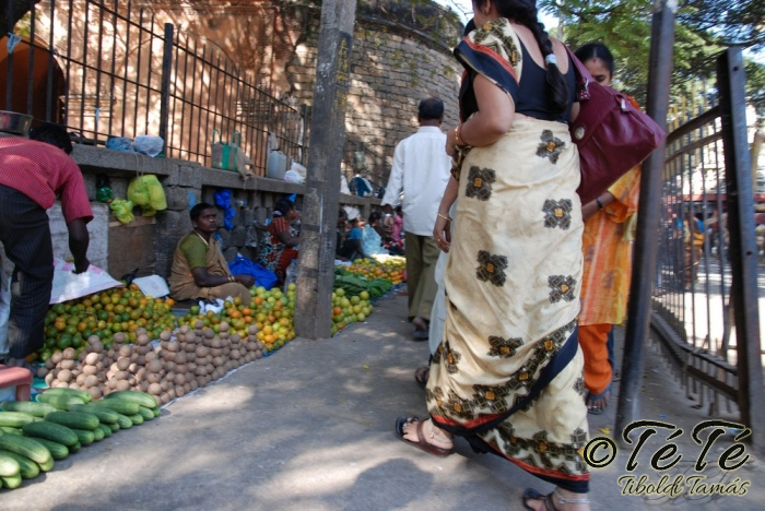 Nah de életünk kockáztatása árán -azaz normálisan közlekedve- eljutottunk Lal Bagh-ig. A park szép. Mármint szerintem semmi különös, ha nem számítjuk a hatalmas ragadozó madarakat, amik repkednek a fejünk felett meg a majomcsaládot akiket a tó partján láttunk egy fán üldögélni, és a sok mókust, akik szaladgálnak, gyümölcslevet isznak dobozból. Ezen nálunk is szokásos dolgokon kívül egy szép, egész rendezett park benne egy kö-hely, tetején valmai oltár szerű építménnyel. Sétánk közben sikerült bekeverednünk a park egy részén lévő éítkezésen dolgozó emberek lakrészébe (gondolom az ővék volt). Pontosabban egy teherautó ponyvákból készített sátortábor volt, egy sátor, egy család. Kiskölyök szaladt utánnunk, csak ennyit tudodd -és ennyit értett- angolul: "Pay Rupies". De ezt hosszú távon képes volt emlegetni. Sétáltunk, ettünk, néztük az állatokat, a növényeket és az embereket. Aztán rávettük magunkat, hogy tovább megyünk a megtervezett útvonalon. Ismét a szokásos hol járda hol nem, hol autó hol motoros világban haladtunk, nem ritkán majd§ 10 perceket állva, mire kitapasztaltuk, hogy mikor lehet nekiindulni az úton való átkelésnek. Útközben elhaladtunk egy könyvtár, mint utólag rájöttem egy kiszemelt látványosság és egy orvosi egyetem mellett is. Ekkor értünk egy -szerintem- buszpályaudvarhoz. Kis pályaudvar, nagy tülekedés. Kapkodó csókok nem voltak, de egymás mellett párhuzamosan álló-menő buszok, amikről a fel-leszálláshoz összevissza kóricált a nép. céltudatosan, mintha tudnánk hova tartunk keresztülvágtuk magunkat, és bementünk a Bangalore Fort nevű látványosság kapuján. Sokkal többet nem tudok róla írni, mivel egy várfallal körülvett udvar. Talán kicsit nagyobb mint otthon a kertünk, de nem lennék benne biztos. Szépen nyírt sövény és fű volt még a csupasz falakon kívül. Illetve volt még egy kapu, ami zárva volt, de láthatóan mögötte frissen teregettett ruhák voltak, szóval lehet, hogy az erőd belsejében laknak. :)