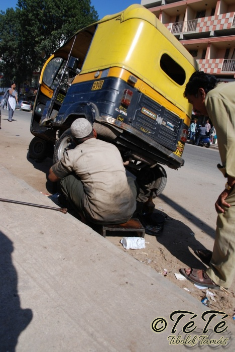 Igaz, majd' 1 órába tellt megtenni ezt az útvonalat. A közlekedési káosz már nem igazán hatott meg, inkább a tájat próbáltam figyelni. Nem volt változatos. itt-ott egy szebb épület aztán vagy semmi vagy valami lepukkant. Még jó csajok se nagyon. Elvétve :) Ami inkább fura, hogy az otthon hallott nagy szemérmességnek nyoma sincsa az óriásplakátokon. Nok spagettipántosban, mélyen dekoltáltban... igaz, hogy inkább csak a plakátokon. Az utcán legtöbbjük szárit vagy -szerintem- otthonka-cicanadrág kombót visel, sállal. Jó, láttunk rövidnadrágos csajt is. talán ha 3at egész nap egy csilliárdos nagyváros közepén. Ráadásul munkanap. (jah. Szombat munkanap volt...nekik:) )