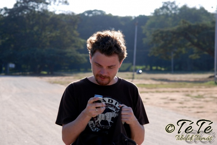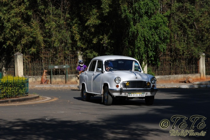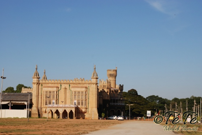 Nah itt aztán elfáradtunk, és megbeszéltünk, hogy fogunk tuktukot. (nemtom hogy kell irni, egyezzünk meg, hogy mindig máshogy fogom :) ) Leintettük az elsőt. Azt mondta, 50ért visz el a Bangalore Palacehoz. mi mondtuk legyen 30. meghúzta a gázt és otthagyott. Vártunk egy darabig, mert csak teli tuk-tuk jött. A következő üres azt mondta 40, mi meg elfogadtuk. így tuktuk-al jutottunk el a Bangalore palace bejáratához. Kifizettük, boldogásg. Besétáltunk. merthogy a Palace bejáratától azért benntebb van a Palota maga. Az épület szép volt, a kert nem annyira. Amig Pifu telefonált és kerese merre jár Ildi a világban, én néezlődtem, kérdezősködtem. kiderült, hogy fizetni kell, és hogy ha fotózni is akar az ember, sokat kell fizetni. Közben jött egy csapat fehérember, mebentek, majd 3 perc mulva kijöttek. Nevetgéltek, csináltak fényképet. az őr rájukszólt. aztán sipolt, aztán fenyegette őket, szép sorban, ahogy készültek a fényképek. Ezek vagy tudnak valamit, vagy nagoyn bártak, mert a bácsi nemcsak, hogy nagydarab cigánylegény síppal, de még puska is van a vállán. Nah mindegy. azért benézünk. Benéztünk. túristáknak 400, indiánoknak 200 pénz. Nem szeretem amikor amdárnak néznek, úgyhogy nem mentünk be. (a fotós jegy 1000 pénz...) vissza akapuhoz, fogtunk egy tuktukot. Úticél, ár, lezsirozva, minden okés.