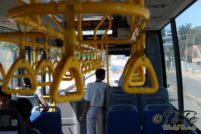 Felkelés, készülés, kevés reggeli, indulás. Kisétáltunk a buszhoz. Közben ezt-azt fényképeztem, de itt semmi új nem várt ránk. még rám sem. Buszmegálló...hmmm hol lehet? Talán ez a felfestés jelzi. Hopp pont jön. Leintem. Megáll az út közeépn, gyorsan felszállunk, elindul, becsukja az ajtót. (fontos, a sorrend, sohasem forditva.) Szóval felszállunk, leülünk. Majd jön a kaller, szép fehér egyenruhájában. Be kell mondani a megálló nevét, hogy meddig megyünk, és nyomja a jegyet, mint nálunk a vonaton a kaller. Mi meg fizetünk mint a katonatiszt. 200 Ftot egy 15 km-es szakaszért.