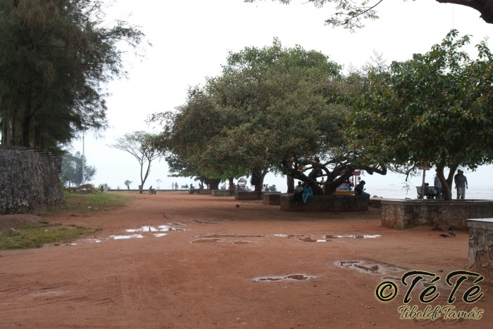 Kiszállunk. Első megálló egy múzeum. Hát annyira nem akarunk, de jó. szép régiseégek vannak ott, menjenek csak be. Hát jó. Légkondiból ki. Paff megint mellbevág a trópus. Bemegyünk. Fura mód ebben a múzeumban a kiállított tárgyakat meg lehet venni. Várjál. Nálnuk ezt nem boltnak hívják? ja, de. túristának ez múzeum. Vettünk is pár apróságot, mert ...csak. Kocsiba be. Nem, most ne menjenek ki a partra, előbb egy szép templom. vagy 600 éves. de tényleg szép. Jó. Légkondiból ki, jön az ismerős 3x fok és pára szédítő ereje. (De a hajam még tart, taft.) A tempom nem, tényleg nem szép. Először is, katolikus templom. Ez még önmagában nem baj, csak ilyet már láttaunk. Azért nézzük meg. Nem a főkapun megyünk be, mert ott állványozva van, épitkeznek. Hátsó kapunál kiirva, hogy le kell venni a cipőt. Fura keverék, de legyen. Benn egyetlen fura volt, mégpedig a padsorok fölött végighúzódó óriási legyező eszköz, amivel a kedves híveket lehet legyezni mise közben, hogy ne pusztuljanak ki. Jah és még valami. Tábla, ami hirdeti, hogy itt járt Erzsébet királynő. Templomból ki. Az árusok rápróbálnak, hogy hátha kifelé veszünk képeslapot. De nem, most sem. Pedig ezek sem egyszerűek... Talán pont azért nem. Kocsiba be, légkondi. kb 200 méter autózás -közben jól lehülés- után elhaladunk a "múzeum mellett" és megállunk a parton, ahova eredetileg mentünk volna, hogy most ez a menüpont, tessék sétálni, megnézni a kinai hálós halászokat. Kiszállás, mellbevág a meleg ismét. Sétálgatunk. Érdekesek a halászok, nem tudom mire és hogyan halásznak, de a nagy hálót leeresztik a vizbe, meg néha felhúzzák. mindenz a part mellett, és a hálók nem is vihetők messzebb. Hülye hlaak miért jönnek ide? :) Más érdekes nincs a parton, hacsak az nem, hogy visszeflé elsétálunk a templom mellett és azon az útszakaszon is, amin eddig 2szer mentük végig autóvval. Nem lett volna egyszerűbb gyalog lesétálni:) megint az igyekezet...