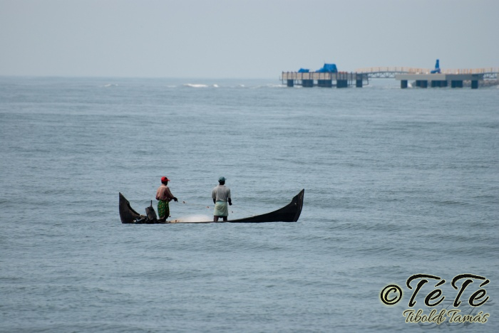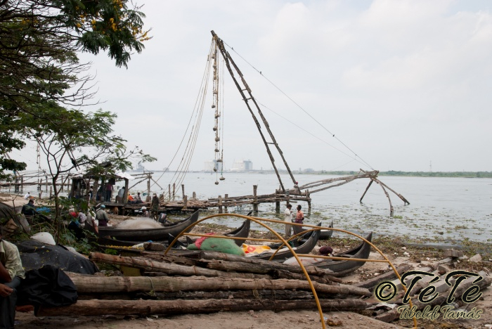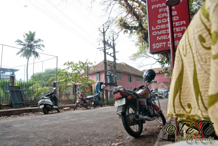 Kocsiba vissza. Ebéd? "á, még nem vagyunk éhesek". Akkor Kiállítás. "hmmm jó..." Odaérünk, kb 3 perc autózás után. Fura mód ez is boltra hasonlit. Ja, hogy ez is bólt. Furáka foglamak. a Következő bolnak mi lesz a neve? :) Kocsiba be. Légkondi. Még nem vagyunk éhesek, de mivel a következő megálló a Kochi palace 4-5k m-re van és a szállás is arra van, most együnk itt vannak jó kajáldák. Hát jó. 2 perc visszafelé az út. kiszállunk, végigsétálunk az "étteremsoron". Itthon jobb érzésű kifőzde nem néz ki igy. Műanyag székek, asztalok épp hogy megállnak a rozoga járdán, kögöttük nem eléggé bizalomgerjesző kifőzdék. A pincérek tolják a ketzünkbe az étlepot, amint elhaladunk a székek előtt. Bele nézünk2 be, de drágálljuk, igy a 3.nál kötünk ki. Félve leülünk, kérünk valami füstölőt a legyek ellen, közben válogatunk a kaják között. Mindenképp seafood. Választunk majd várunk. majd kérünk még füstölőt, a lejárt kólnáink mellé a legyek ellen. Fura, hogy itt ha Coke-ot kérsz, akkor az a Coca Cola-t jelenti és szólnak, hogy sajnos csak Pepsi-t tartanak. A legtöbb helyen egyébként Pepsi termékek vannak. Kaja kijön. Andinak és Pifunka küzdős rákot sikerült választania, de a végén mindannyian jól lakunk, visszabaktatunk az autóhoz, kézmosás üvegből, beszállás. Fáltünk eldobni az üveget, ami kifogyott, mert hát azért mégse...Sofőrünk simán kidobta a sajátját az ablakon induláskor. :)