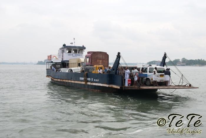Ébresztő, reggeli, kicsekkolás. Meg már mint aki ezt csinálta életében. Kocsiba be, hogy elvigyen Cochi (ejtsd: kocsi)-ba. :) Mivel mostanában tüntetések vannak, ezért nem a főúton megyünk, hanem a komppal, magyarázza a sofőr, -nevezzük Bélának-. Nem baj, a kompnál fotózunk kicsit, meg levegőzünk. Nagyon fura volt, hogy miért akar az előttünk lévő autó tolatva a kompra menni. Aztán mi is. akkor láttam, hogy a komp nem komplett, mert nincs másik ki-bejárata, mint ahogy az otthon szokás. Szóval még fordunk is útközben. Először az autók és a tuktukok, aztán a motorosok és a gyalogosok szállnak be. Kifelé kicsit változatosabb, ki-mikor-tud elven szállunk. Pláne, hogy a két és háromkerekűek még forgolódnak is, hisz azokon nincsen rükverc...(hehe)