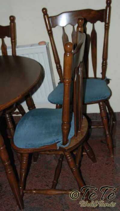 Valódi fából készült, kinyitható kerek asztal, 6 székkel.